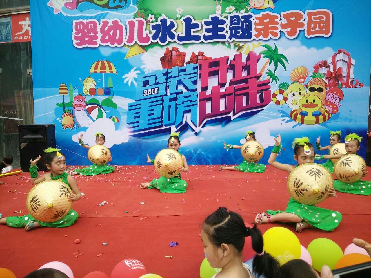 现场营造喜庆氛围,加入店面婴儿游泳元素,符合店面卡通形象设计。歌舞准备充分。人员分工明确。做好开业庆典流程的规划方案。