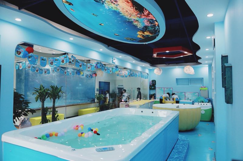 婴儿游泳馆的装修设计在色调上一般都会以蓝色为主,元素上融入卡通、海洋、星空等多种符合游泳、宝宝审美的元素。一方面让宝宝在游泳时有个好心情,另一方面可以保证婴儿游泳馆的整体风格和视觉美感。